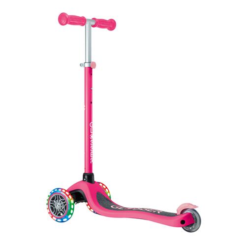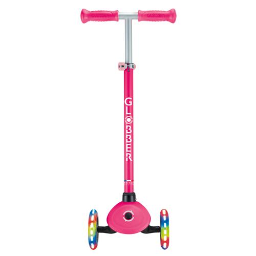 Globber Primo Lights Kids 3 Wheeled Push Scooter - Fuchsia