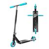 The scooter features a durable and lightweight aluminum frame, as well as sturdy metal core wheels for smooth and stable ride. The deck is covered with premium grip tape for added control and traction, and features a boxed end design, making it easy to learn grinds. The scooter also has a head tube cut out for added style, and comes with our super soft TPR handlebar grips for a comfortable and secure grip.