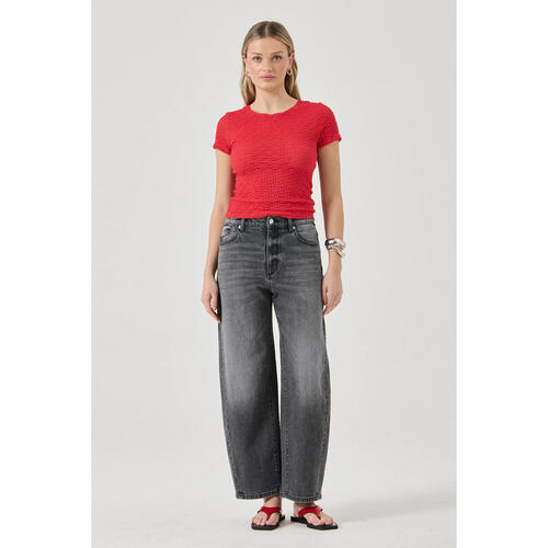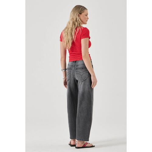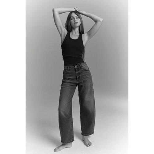 Gigi Barrel is a super high rise jean that holds through the seat, balancing the sculptural leg silhouette.