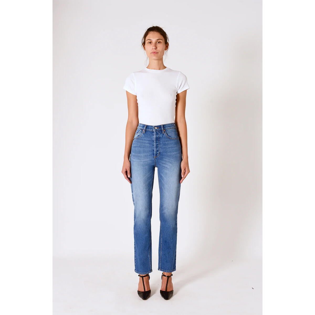 A brand new fit: a high-rise jean with a slim straight leg based off our Original Straight silhouette