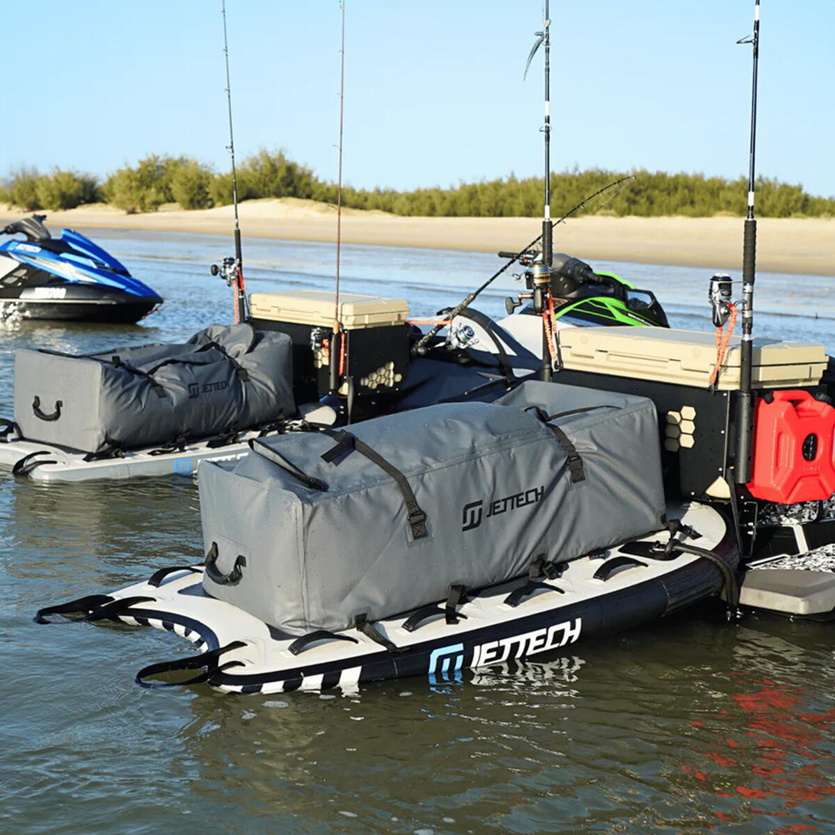 The Jet Tech adventure set up doesn't just stop there, optional with our Jet Tech rescue sleds, and clip on 195L Touring Dry bag to pack your weekend camp set up or daily accessories for some great family fun.