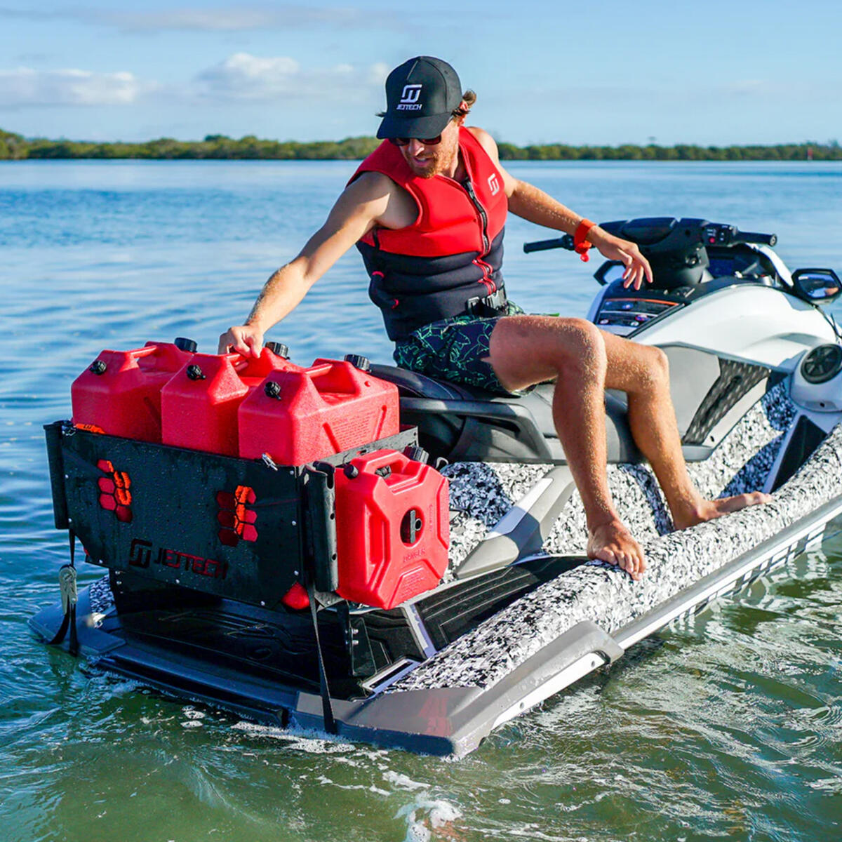 The Jet Tech Storage crate set up doesn't just stop there, it also pairs up with our Jet Tech rescue sleds, clip in 195L dry storage bags or upgrade it up to the ultimate jet ski fishing set up. The Jet Tech Storage crate is perfect to pack your weekend camping gear or daily accessories for some great family fun.DEEP DIVE:
