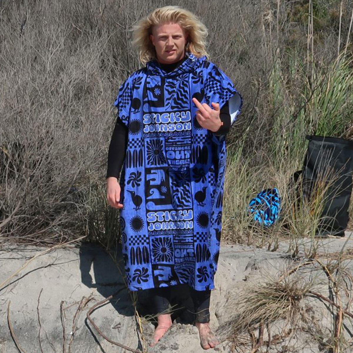 Sticky Johnson Aotearoa Hooded Towel Blue