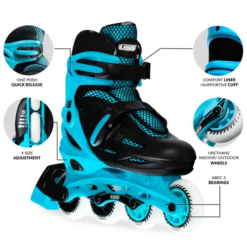 Crazy Skates Blade Teal Size Adjustable Inline Skates
