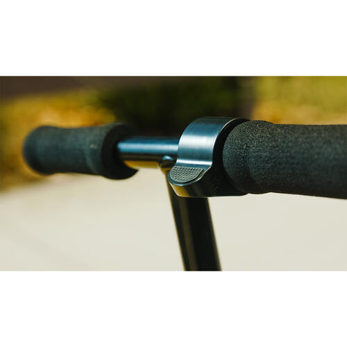 - Thumb-activated throttle and foot-activated rear-fender brake deliver top speeds and quick stops