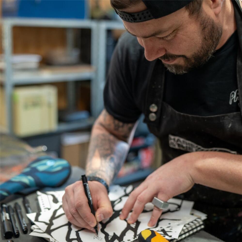 In our pursuit to bring fun back to the industry, we’re excited to unveil our first-ever collaboration with renowned South African artist and MTB junkie, Johan “Hasie” Johnston of Hasie & The Robots. After following @hasie_and_the_robots on Instagram, we were instantly drawn to his unique style and deep passion for mountain biking. We hit it off on our first chat and a collab was soon in the works.