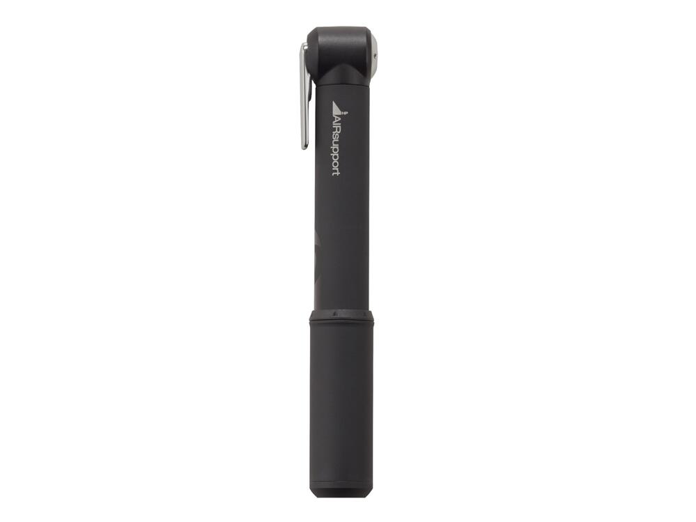 The Air Support Road hand pump is a highly durable pump with a small volume chamber for quick inflation of higher-pressure tyres up to 115 psi. The fold-out lever locks the pump head securely to the valve for consistent airflow into the tyre. Use the included bracket to mount it under your bottle cage. Available in two lengths.