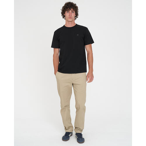 • What you need to know: 100% Cotton, 220gsm, 20mm Neck rib, Premium weight jersey, Classic slim fit, Short sleeve, Huffer branded embroidery badge