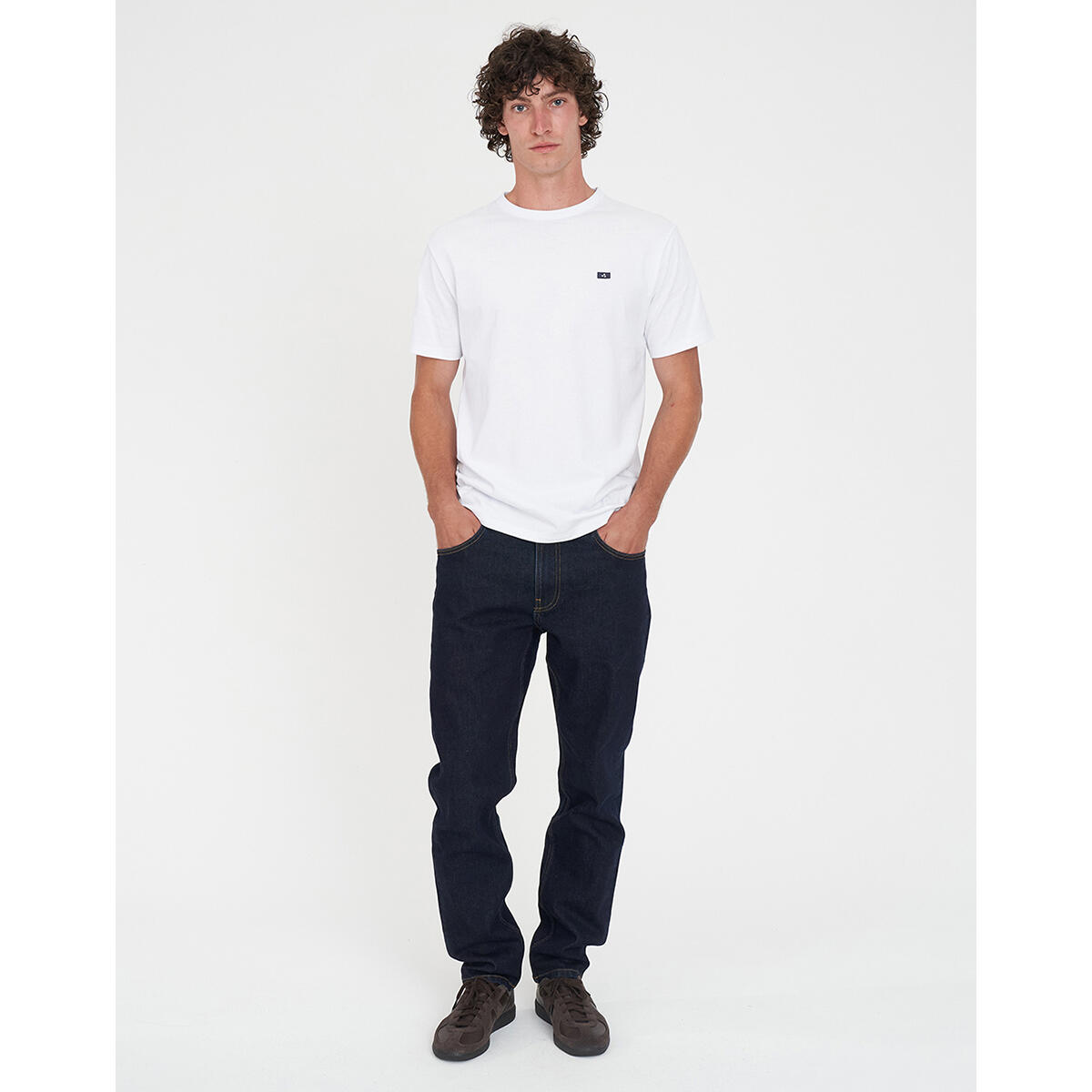• What you need to know: 100% Cotton, 220gsm, 20mm Neck rib, Premium weight jersey, Classic slim fit, Short sleeve, Huffer branded embroidery badge