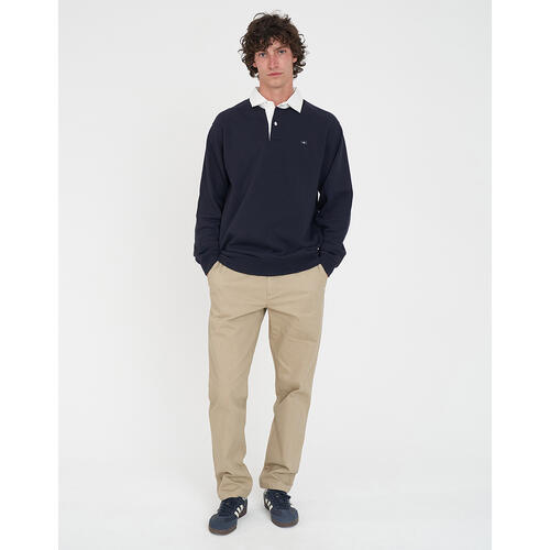 • What you need to know: 80% Cotton 20% Polyester, 300gsm, Mid-weight brushback fleece, Contrast drill collar, Ribbed cuffs, Classic fit, Huffer branded embroidery badge