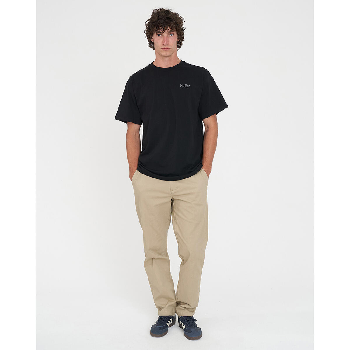 100% Cotton / 190gsm / 20mm Neck rib / Classic streetwear fit / Short sleeve / Huffer branded placement print application