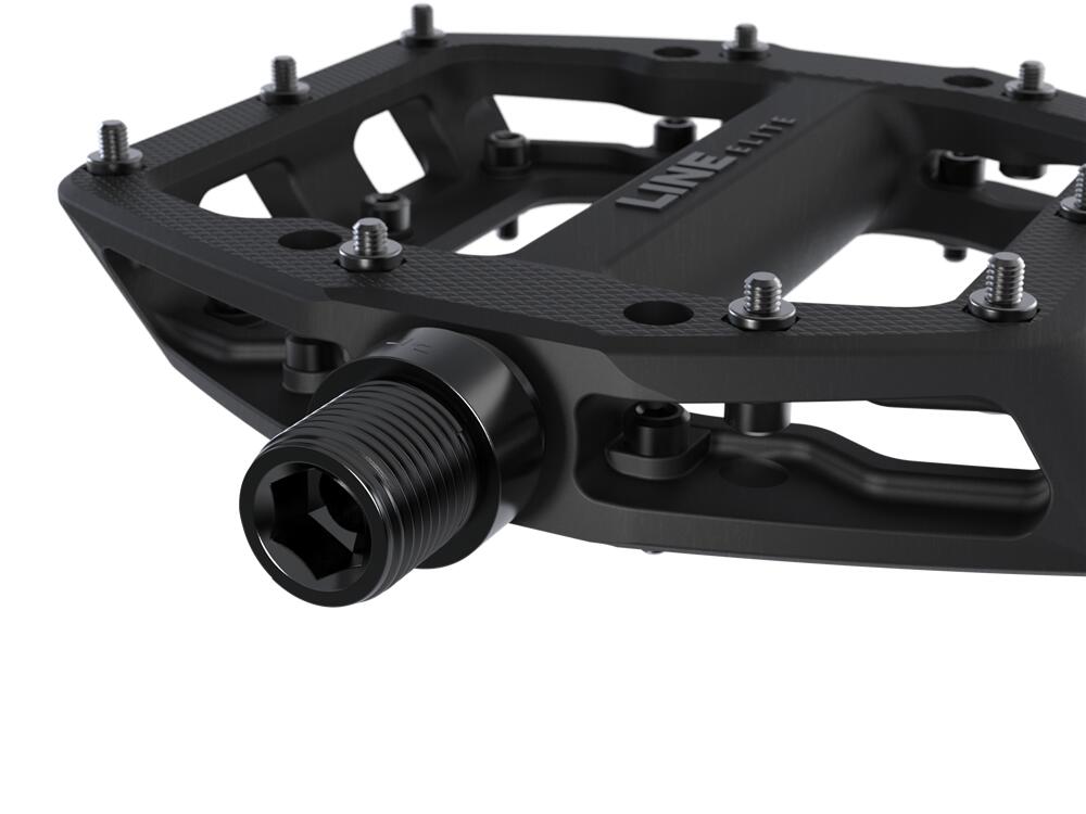 From enduro to dirt jumpers, many riders prefer flat pedals, but no matter where you ride, you’ll appreciate the benefits of the Line Elite MTB pedal. It features a rugged nylon body and virtual-concave platform with replaceable traction pins, so every time you place your foot, your shoe stays put.