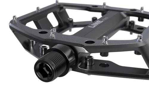 The Line Pro Flat Pedals deliver a concave body and solid platform with traction pins that mean every time you place your foot, your shoe stays put. Lift off at any moment knowing that you can pile on the energy and find firm placement.