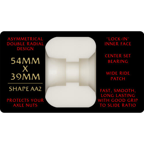 Nano Rats™ put both sides of the wheel to work, making skating easier and more fun. It has the outer edge you are used to, a lock-on inner edge, and center set bearings to give you a wheel that will upgrade your ride without changing the balance of your set up. Halfway between Nano Cubics and traditional symmetrical wheels, Nano Rats™ provide an easy way to make the Dragon Formula™ work even better for you.