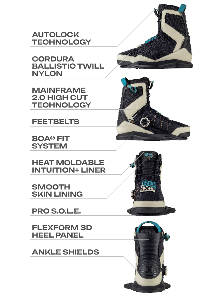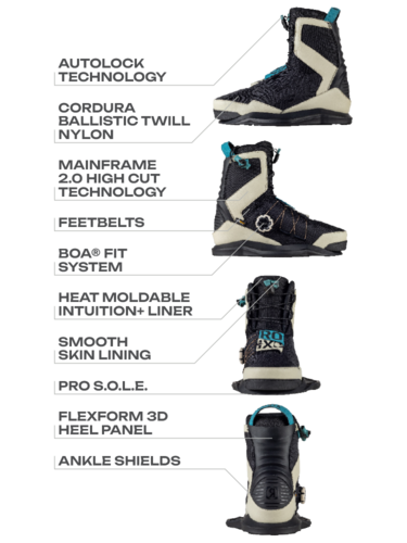 Starting with the industry first BOA® flap configuration, we’ve made it easier than ever to dial in the lower enclosure. This design was built from the ground up with two main objectives - 1. Unmatched board feel, 2. Eliminate lace friction so they are easy to slip in and out of. The double-lasting design comprised of our proprietary Intuition+ heat moldable liner and Mainframe 2.0 High Cut skeleton gives the rider support where it is needed most. By using our popular Cordura Ballistic Twill Nylon fabric, sleek off-white materials, and blue suede textured accents, this boot is sure to turn some heads and withstand any environment.