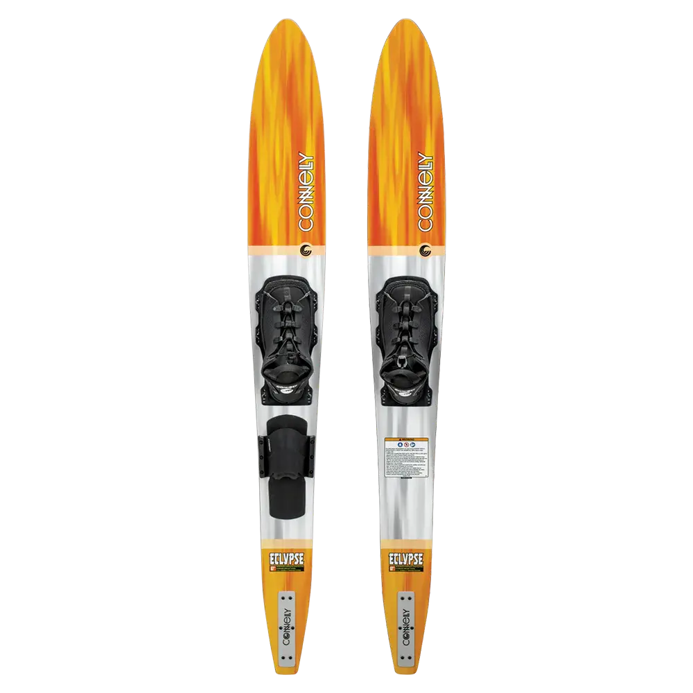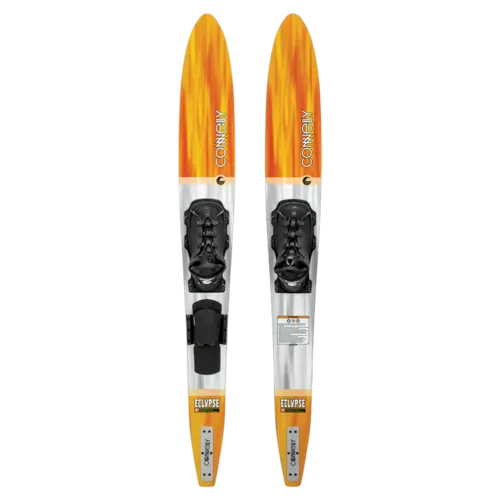 The Eclypse is our premier combo set designed to make skiing easier and more fun for all ages and skill levels. The wide nose and tail make deep water starts easier and the narrow waist keeps the ski lively out on the water. Fit with our easy-to-use Swerve binding, with a contour-conforming elastomer outer wrap, this combo pair will keep the whole family smiling.