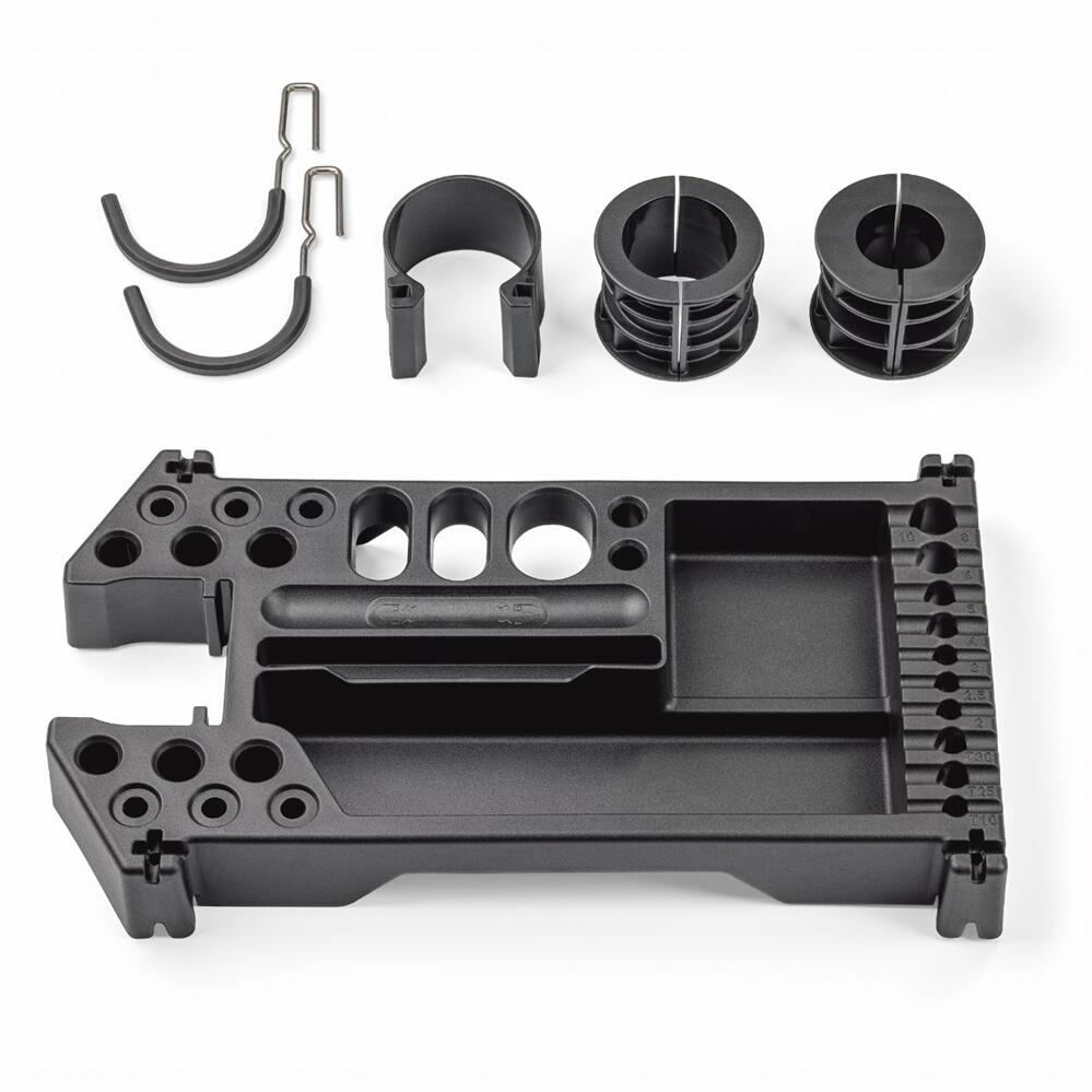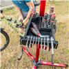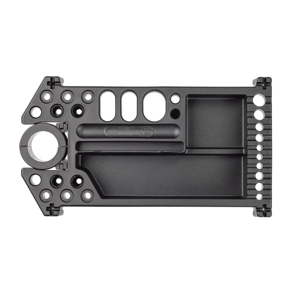 - 27 tool slots with spaces sized for T-Handle Hex and Torx Sets, 12 & 15mm thru axles plus a variety of large and small-handled tools.