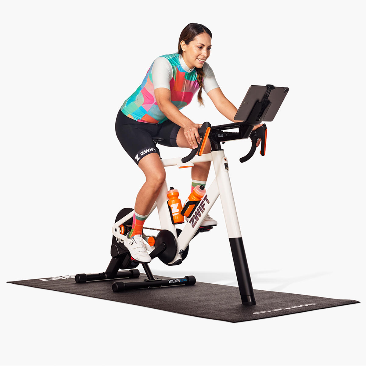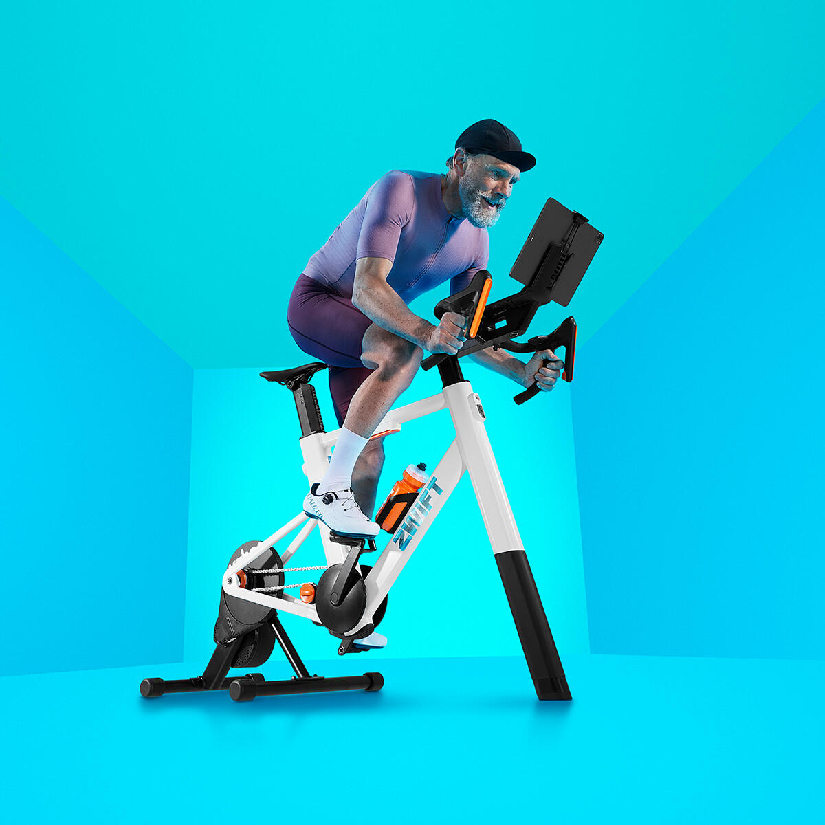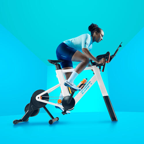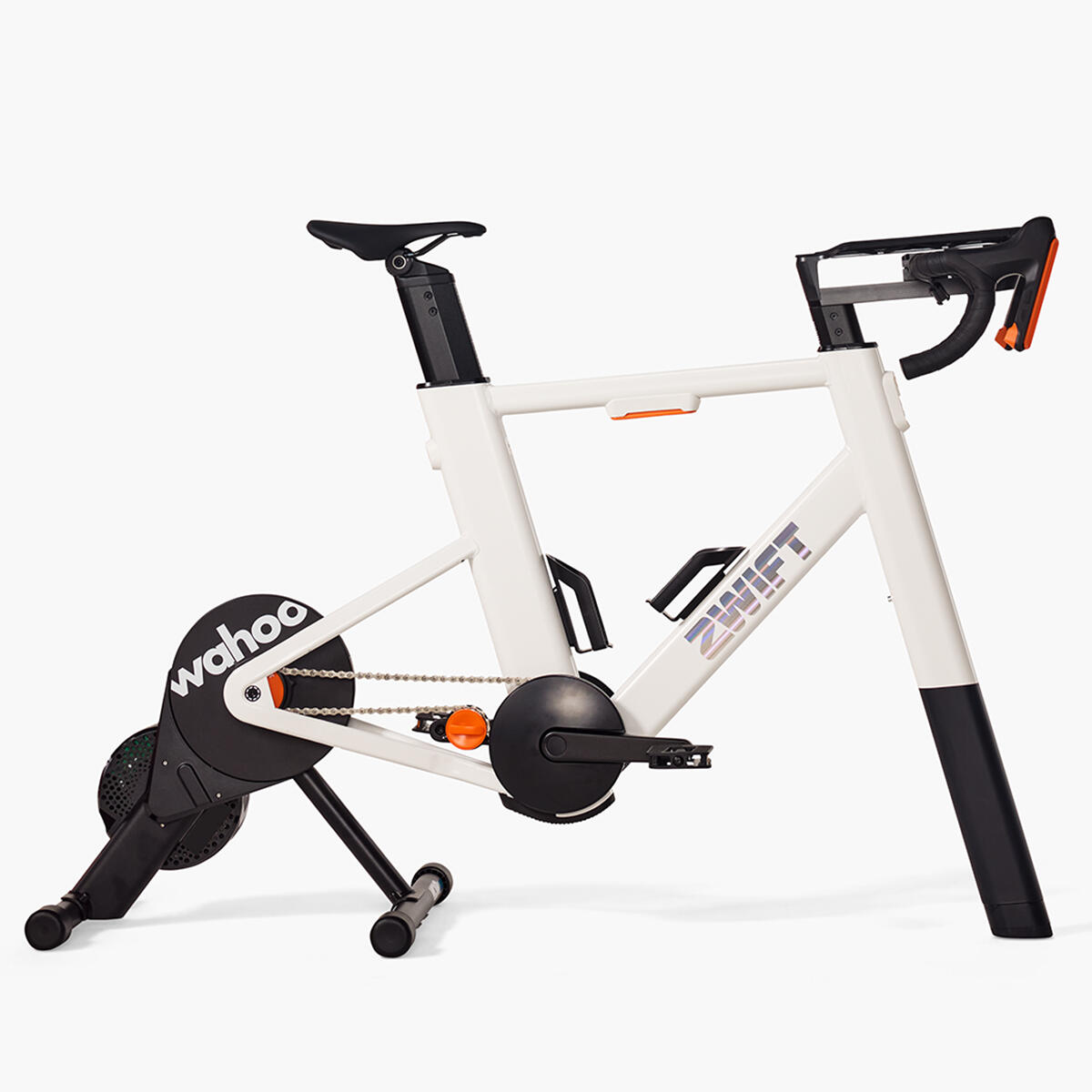 Zwift Ride offers a sleek, space-saving setup that’s impressively quiet. It’s smaller than a traditional bike and trainer, but still fits most riders.