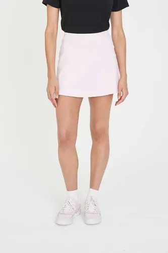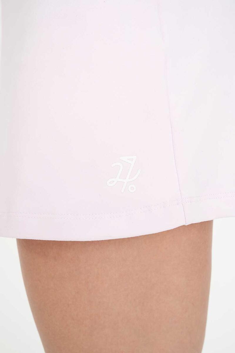 • Here's what you should know: 80% Nylon 20% Elastane, 350gsm, Mini length, A-line, Built in bike short with side pocket, Huffer golf placement embroidery