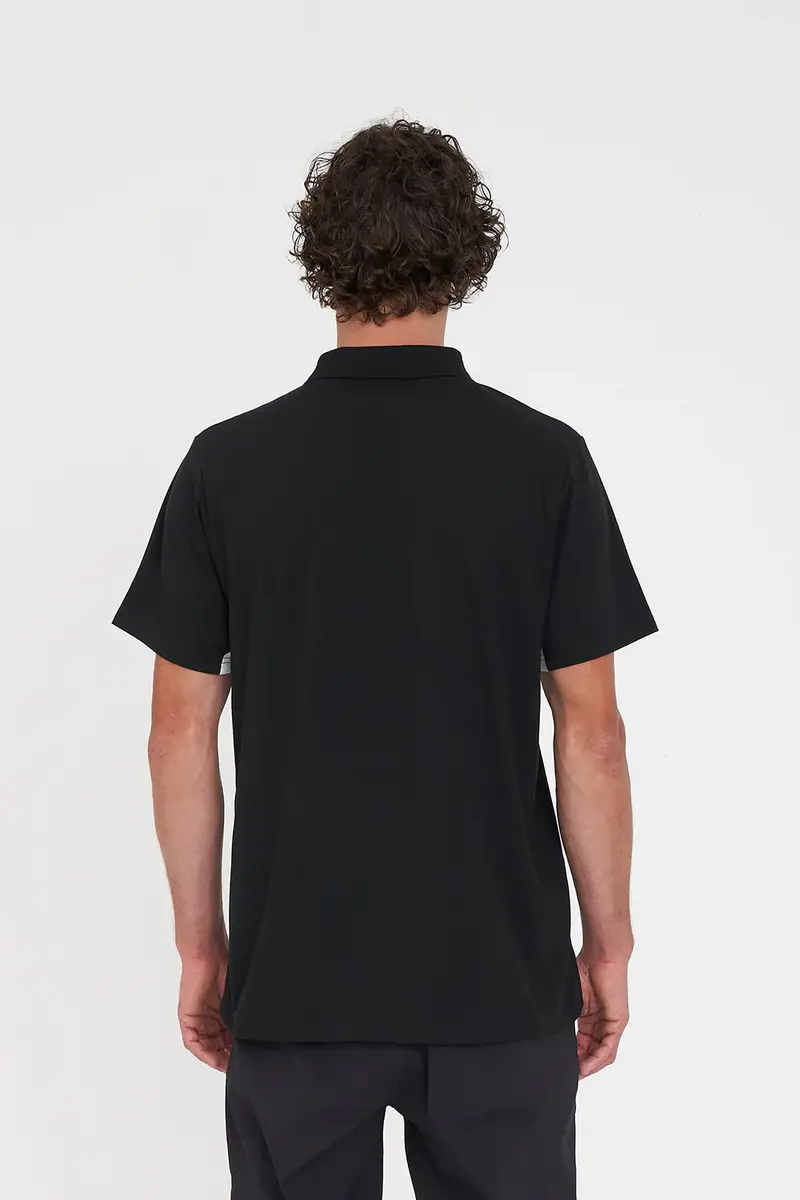 Huffer Golf Tech Panel Ss Polo Black/Chalk