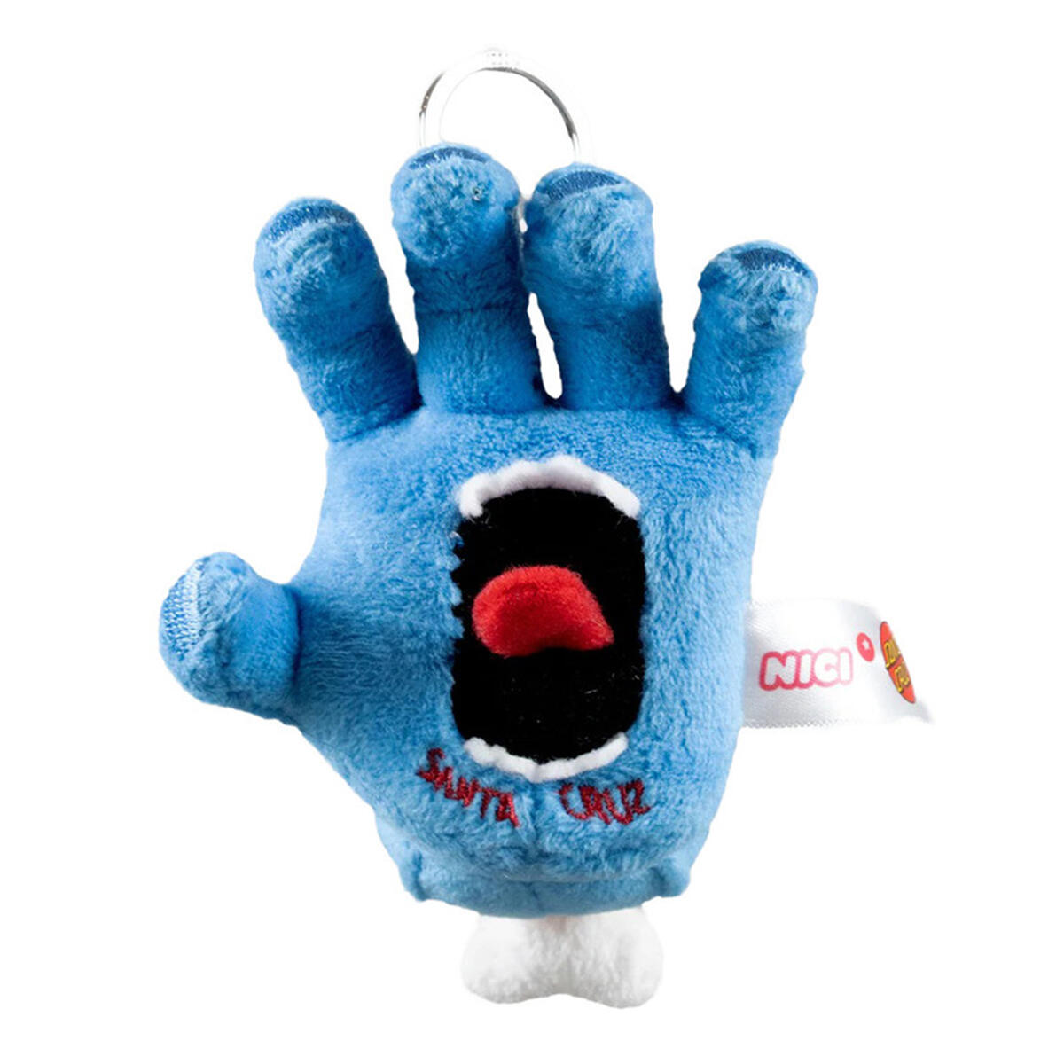 The Santa Cruz Screaming Hand Keychain 3-dimensional, 10cm poly filled plushie features attached keyring.