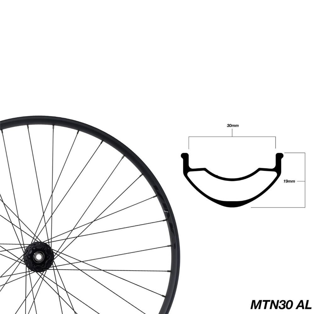The MTN30 AL boasts an optimized 30mm internal width, the modern standard for mountain wheels. It features a precision-sleeved construction and a pronounced rim bead that improves sidewall protection. The rim and decals have a subtle matte finish, letting the hub color set the tone for the bike’s aesthetics. All MTN30 AL wheels have a 32-hole spoke count and a hookless bead for compatibility with today’s tubeless tyres.