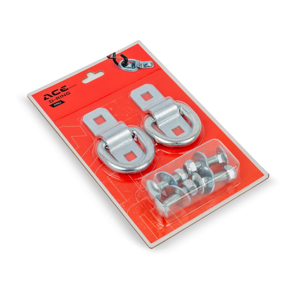 The Acebikes Heavy-Duty D-Ring Pro mounting plate may be folded flat when not in use. Two pre-drilled holes make it easy to install. Both pieces are zinc-plated to prevent damage from, for example, rust. For your flexibility, create an anchor point anywhere you want to tie down your motorcycle easily and securely in any given situation and for any vehicle.