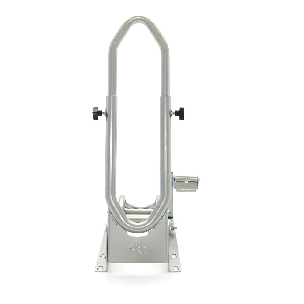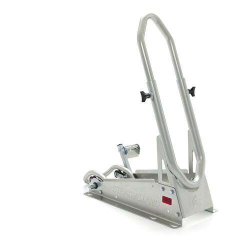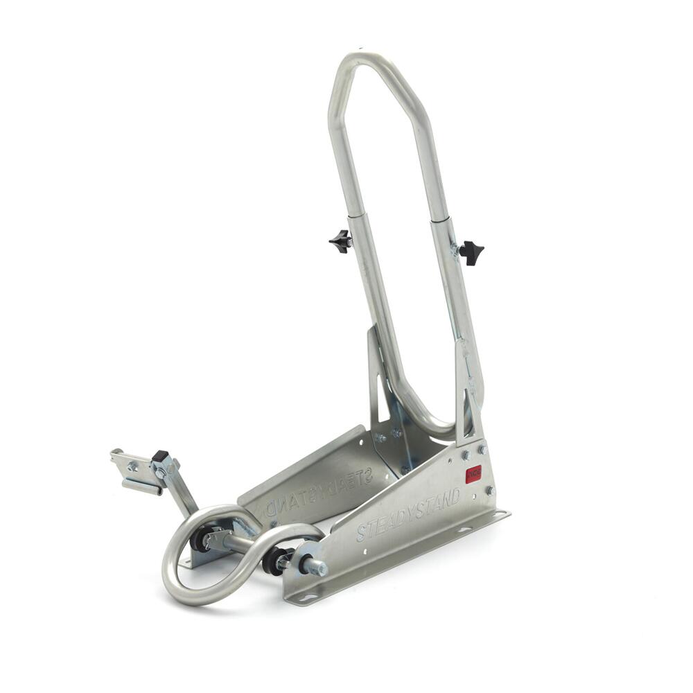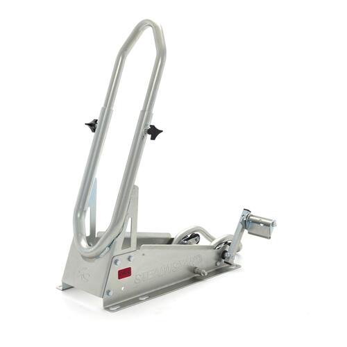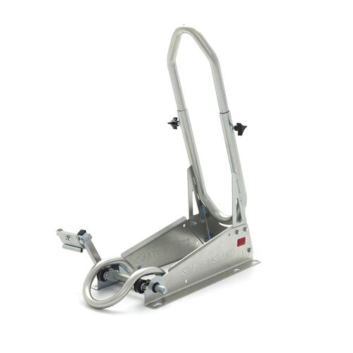 The SteadyStand Cross has a clever clamping device that will prevent your motorbike from moving or leaning over. By using the foot pedal, your front wheel can easily be anchored to the stand. This makes it unnecessary to pull down your fork and damage the seals. By using the SteadyStand Cross, you will only have to use tie-downs to secure the rear end of your motorbike. The special foot pedal can be installed on both sides of the SteadyStand Cross. The SteadyStand Cross is suitable for 18 to 21 inch wheels and tyre sizes from 90 up to 120mm.