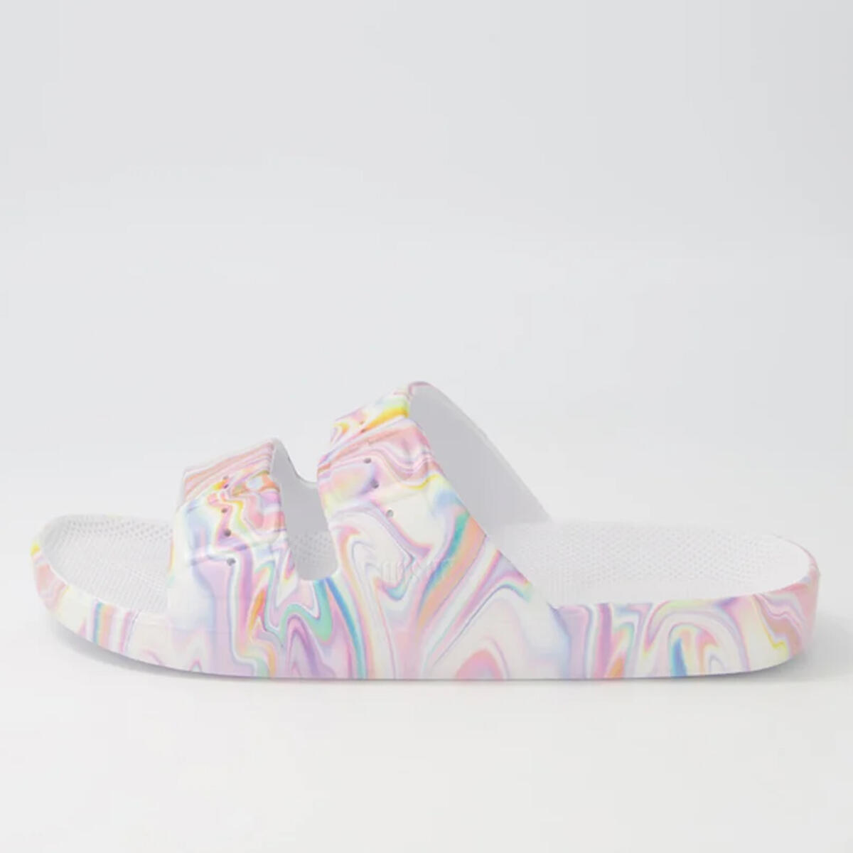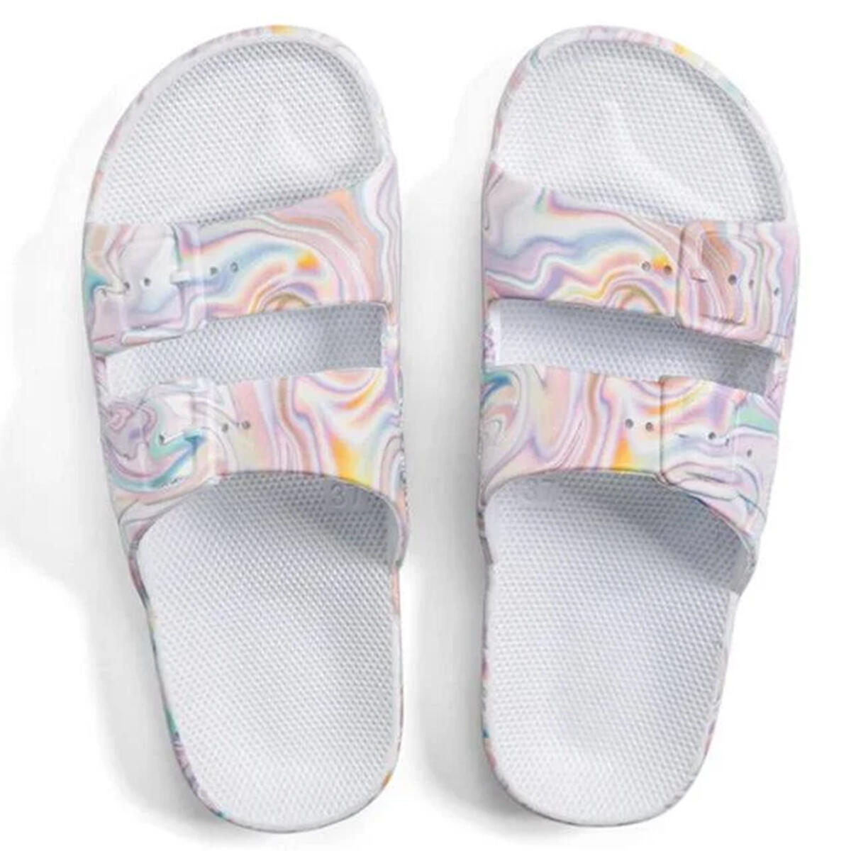 FREEDOM MOSES offer eye-popping chill essentials. Cool, colorful, genderless, ageless, timeless and most importantly - fun. You can buy FREEDOM MOSES slides online at Hyper Ride