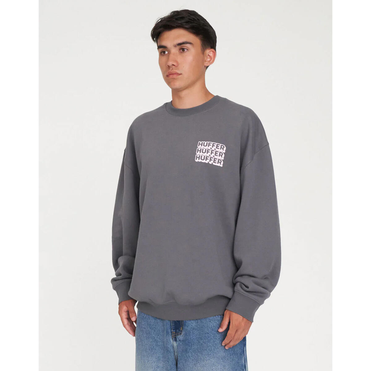 • What you need to know: 60% Cotton 40% Polyester, 350gsm, Mid-weight brushback fleece, Boxy fit, Huffer branded placement print