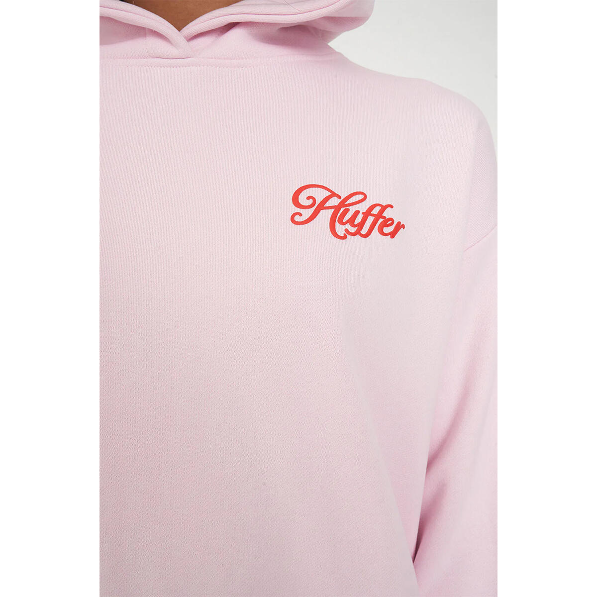 • What you need to know: 60% Cotton 40% Polyester, 350gsm, Mid-weight brushback fleece, Boxy fit, Huffer branded placement print