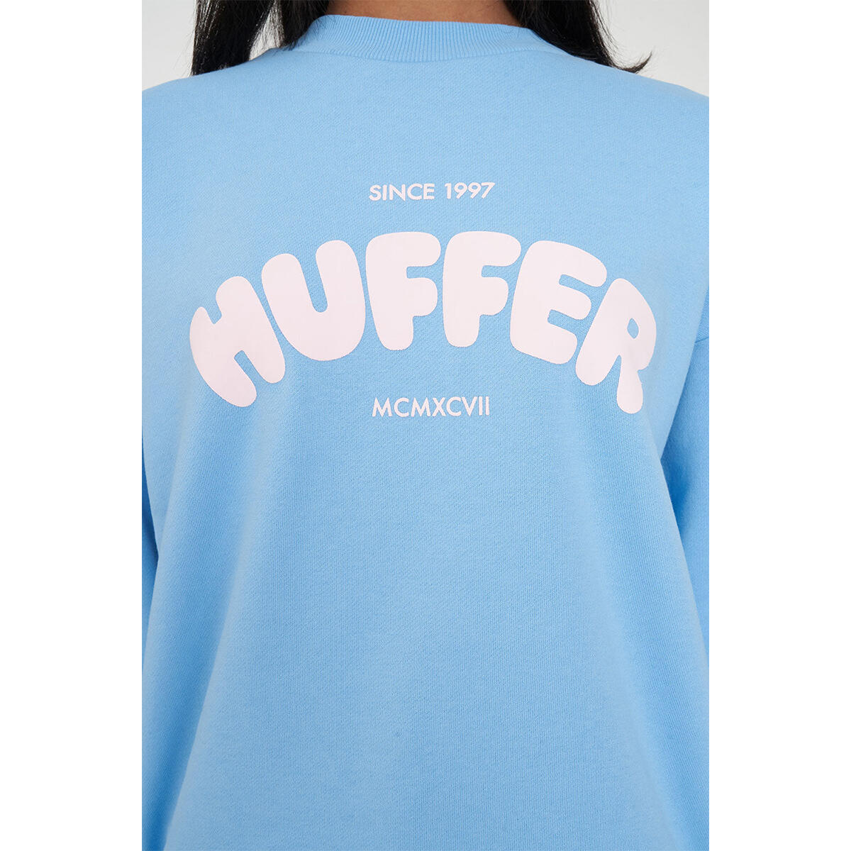 • What you need to know: 60% Cotton 40% Polyester, 350gsm, Mid-weight brushback fleece, Boxy fit, Huffer branded placement print
