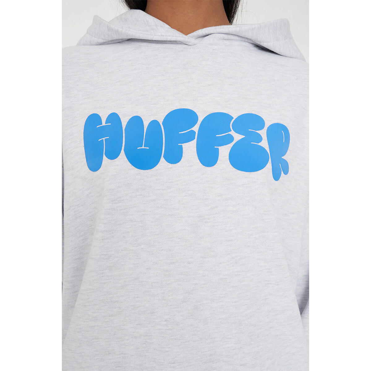• What you need to know: 60% Cotton 40% Polyester, 350gsm, Mid-weight brushback fleece, Boxy fit, Huffer branded placement print