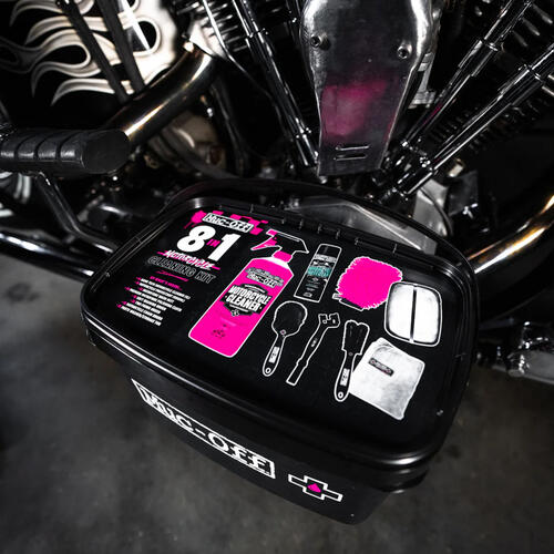 Everything comes stashed in a storage tub (which doubles as a handy parts washer) so grab the 8 in 1 Motorcycle Cleaning Kit today and take-on even the messiest post-ride clean-down with speed and ease.