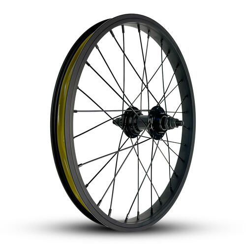 Durable replacement rear wheel designed for 18" BMX bikes, including the Mongoose Legion L18. Built with a strong aluminum rim and steel spokes for reliable performance, it features a 3/8" axle and 10-tooth driver for smooth power transfer and consistent riding. The sleek black finish provides a clean look while maintaining the strength needed for everyday BMX riding.
