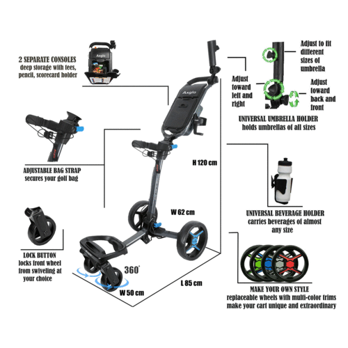 - Replaceable wheels with multi-color trims will make your cart unique and extraordinary