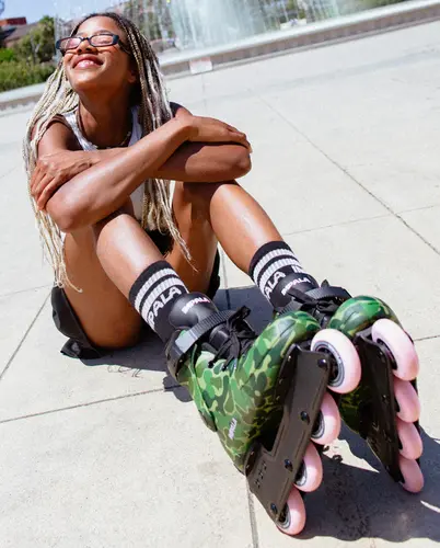 Recreational and beginner inline skaters who want an easy, supportive ride with a fun, street-style edge. A little cheeky, a little tough, and very fun to skate. Camo is all about cruising with confidence, mixing things up, and enjoying every roll — no rules, just good vibes.