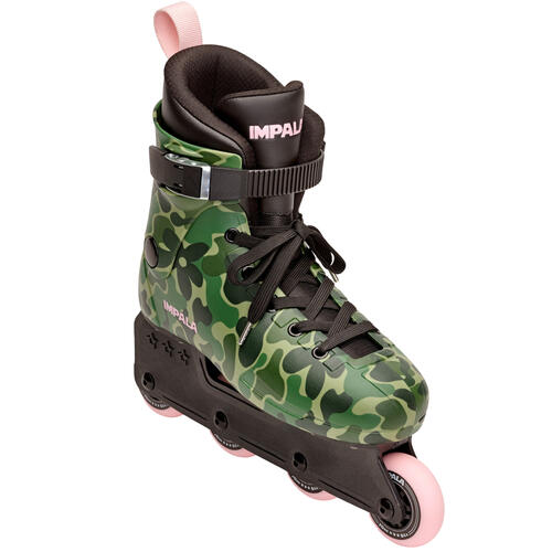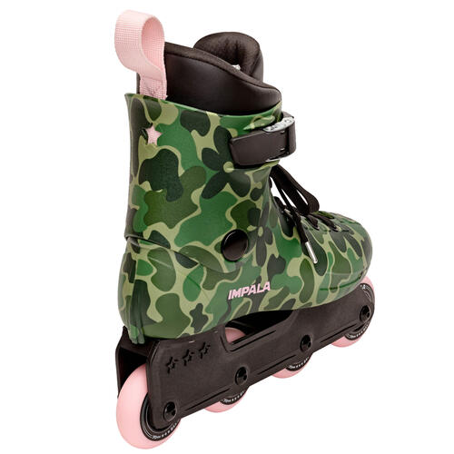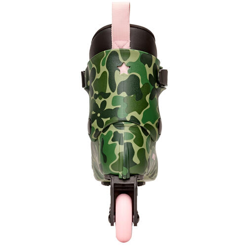 This camo inline skate brings a little sneakiness and a lot of fun to every roll. With a classic camouflage print and bold black details, it’s made for playful cruising, confident moves, and skating your own way.