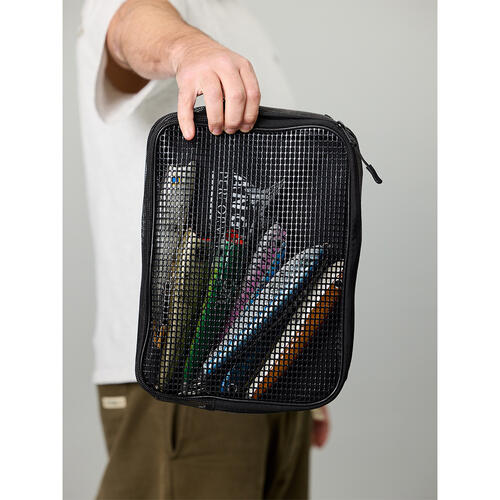 A double-sided zip tackle pouch with a strong, durable mesh outer and quality YKK zips. Being 32cm wide and 23cm high, it’s perfect for all sorts of tackle from stick baits, soft baits, traces and more and that’s only fishing tackle. It’s also the ideal pouch for looking after computer cables, travel doc and even toilet bags. Oh forgot to mention the mesh makes it easy to clean & dry so make sure you check them out online so your fishing tackle is organised for your next adventure.