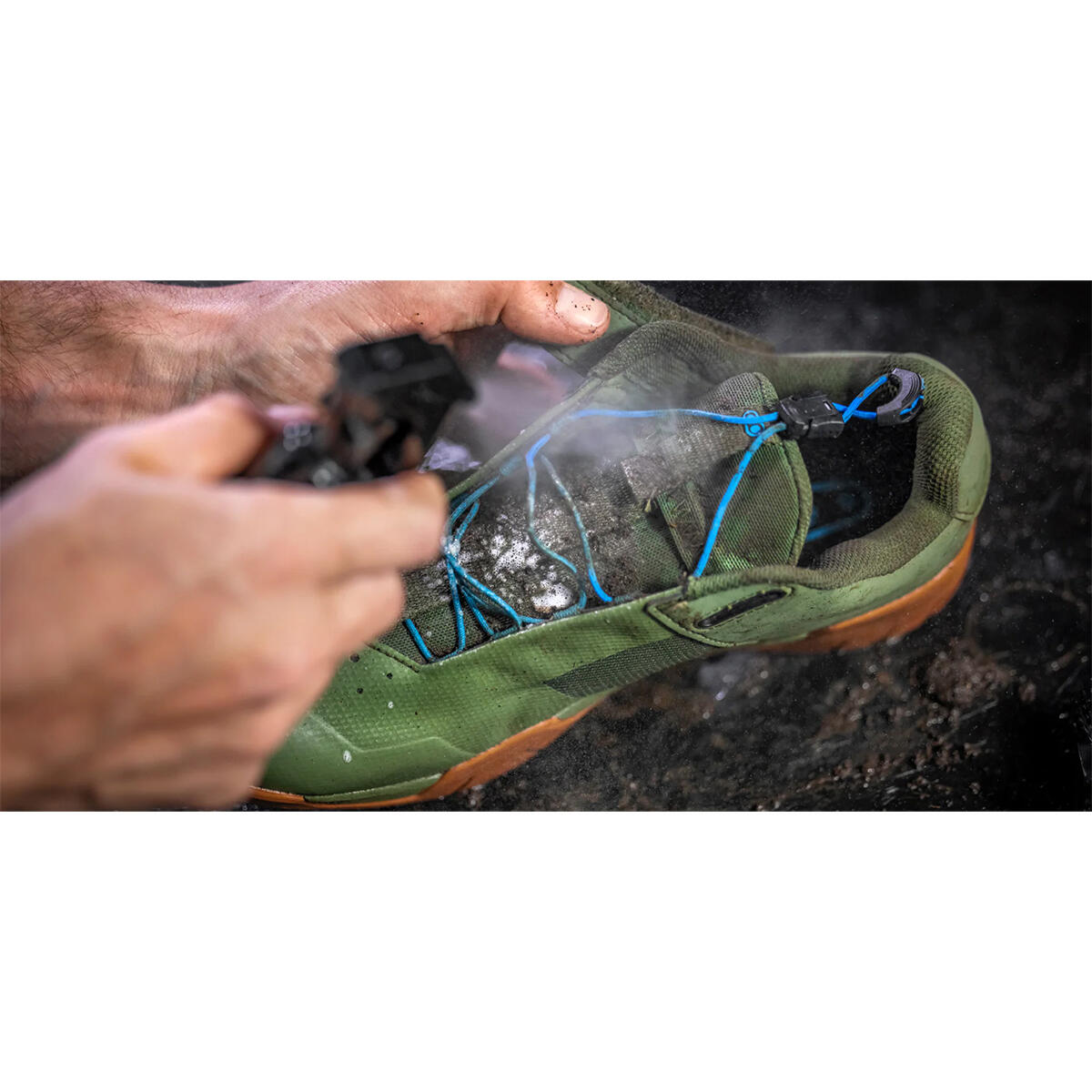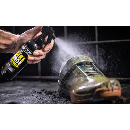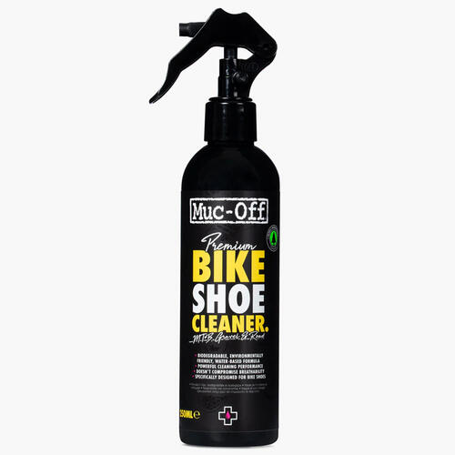 - Brush off any loose dirt with Muc-Off Premium Bike Shoe Scrubber then simply spray onto the areas you wish to clean.
