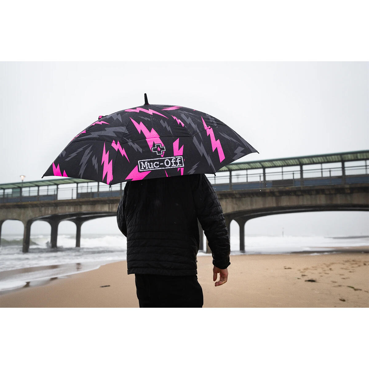 Introducing the Muc-Off Bolt Umbrella, your new storm-slaying sidekick. Forget goofy golf umbrellas, this beast is built for action, not a fairway stroll.
