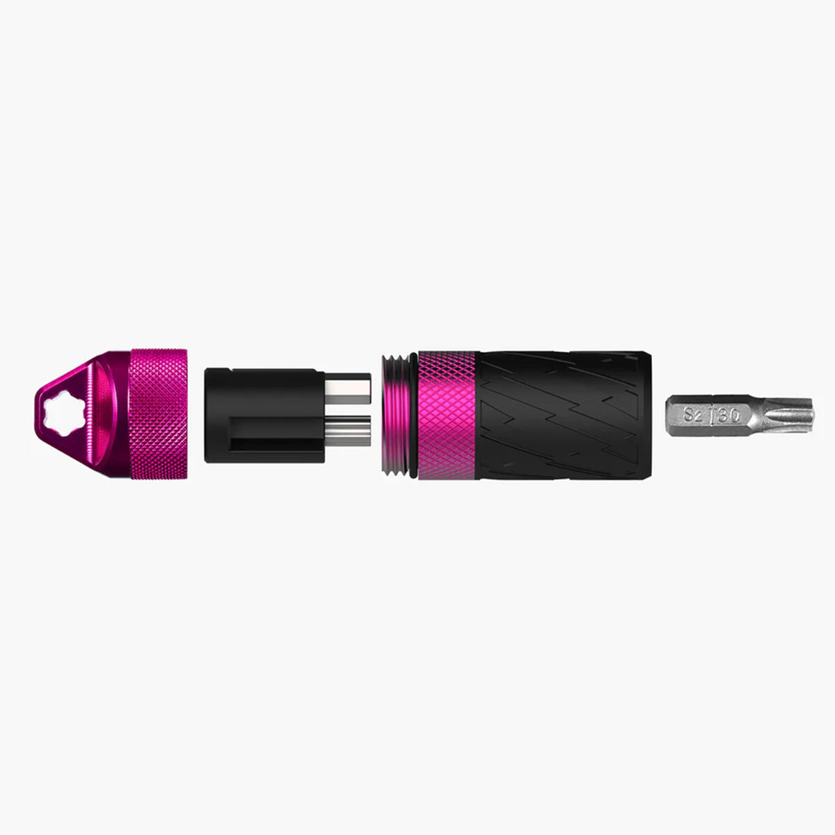 - Select the appropriate tool bit for your crank (5mm, 6mm Hex, T30 Hex) then place the tool bit holder back inside and re-screw the top cap on.