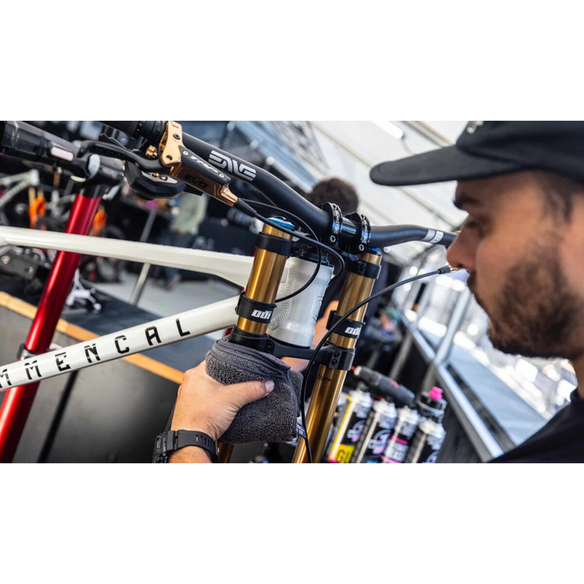 3. Do not use in direct sunlight. After cleaning, wipe down fork, shock, and/or dropper post with microfibre cloth and remove any excess water