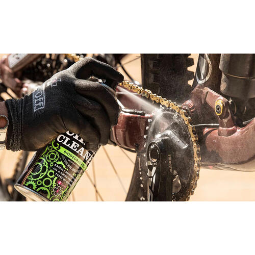Muc-Off high-performance Bio Chain Cleaner has been specifically formulated to quickly and safely remove heavy chain grime using advanced solvents. Its unique formula breaks down oil and grease to leave the entire chain sparkling clean and contaminant free.