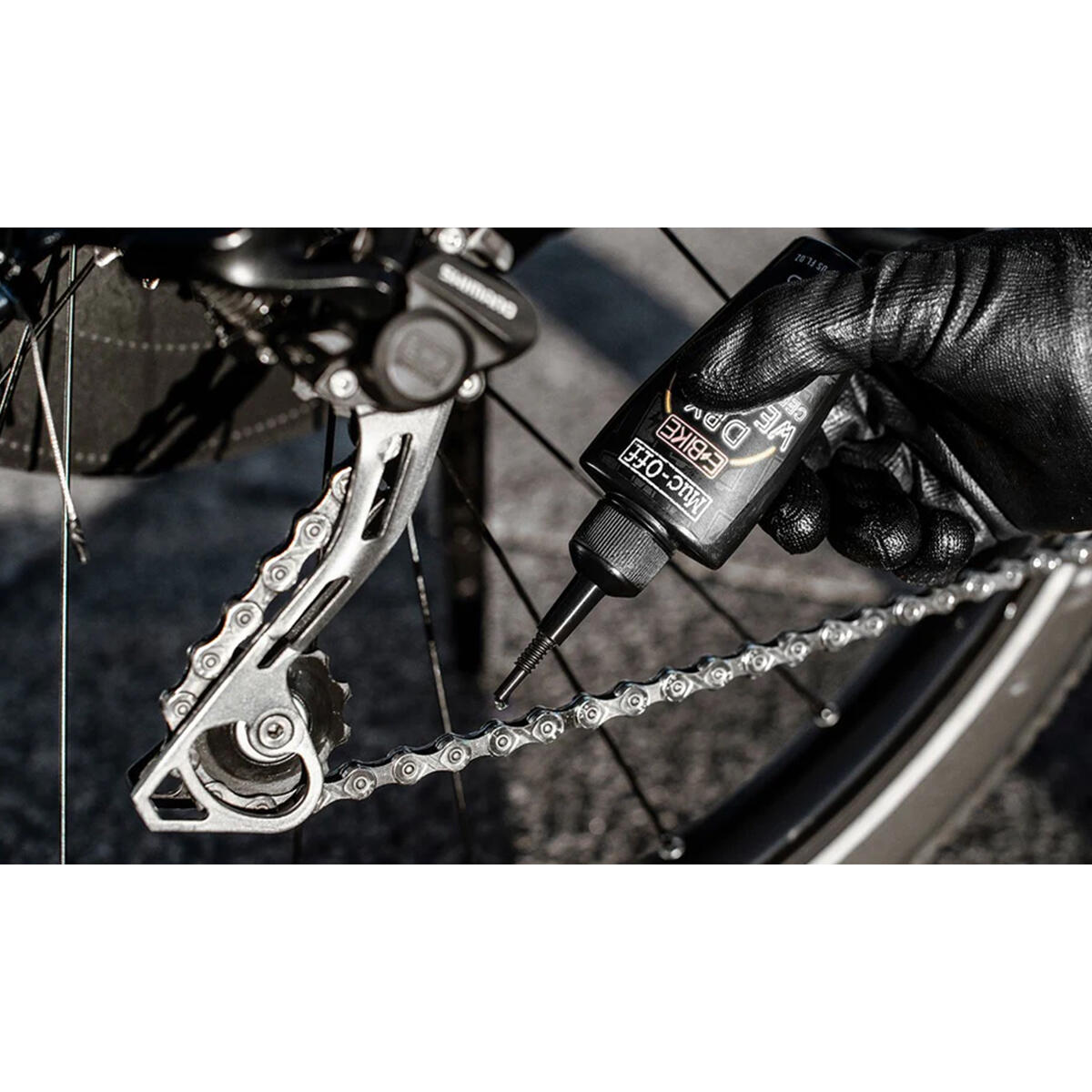 Our eBike Dry Chain Lube is a premium formula that creates a ceramic coating for unparalleled lubrication. Check out how to apply with ease alongside the Muc-Off eBike Drivetrain Tool.