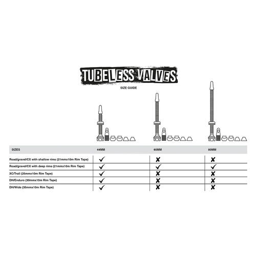 - 2x 7075 aluminium tubeless Presta valves