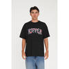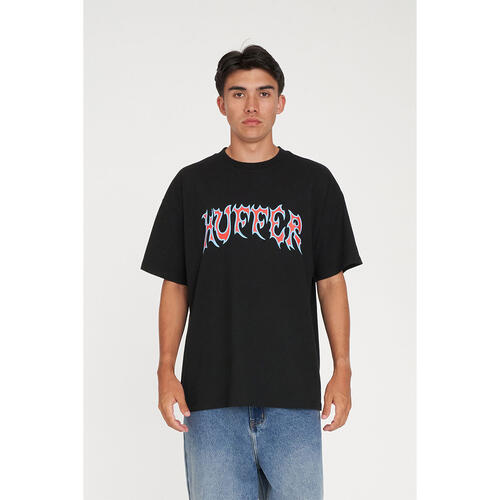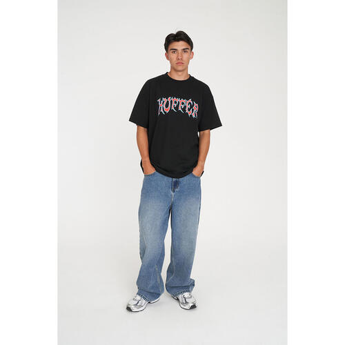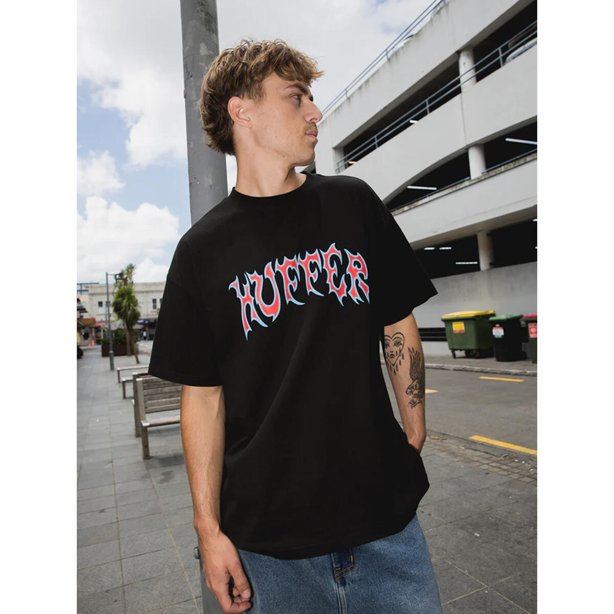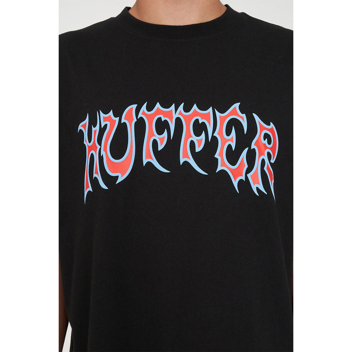 • What you need to know: 100% Cotton, 220gsm, 25mm Neck rib, Premium weight jersey, Relaxed fit, Short sleeve, Huffer branded placement screenprint & puff print