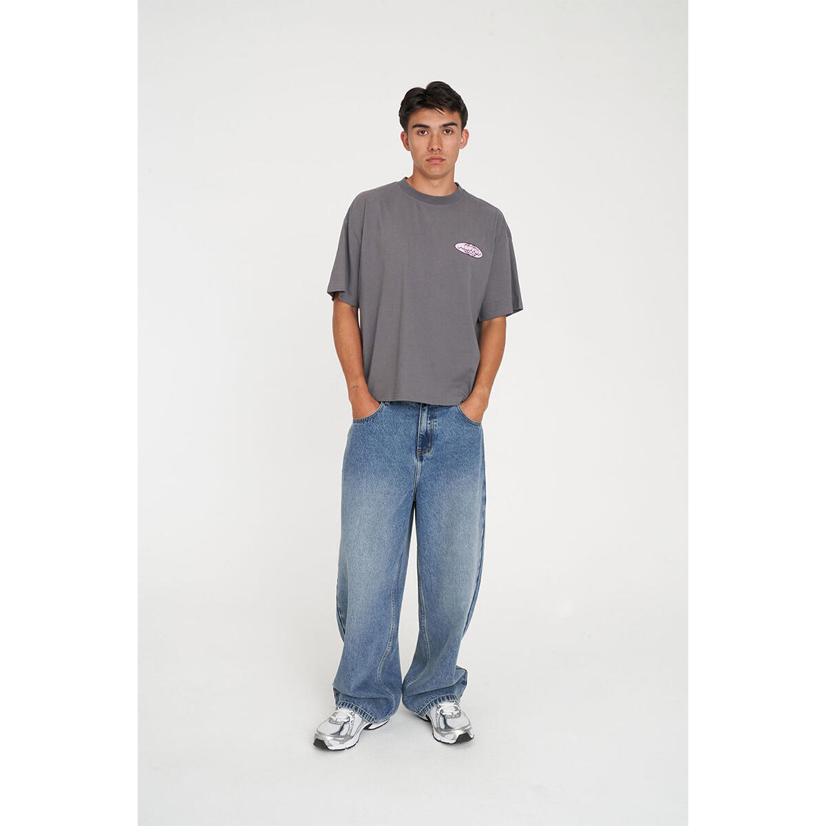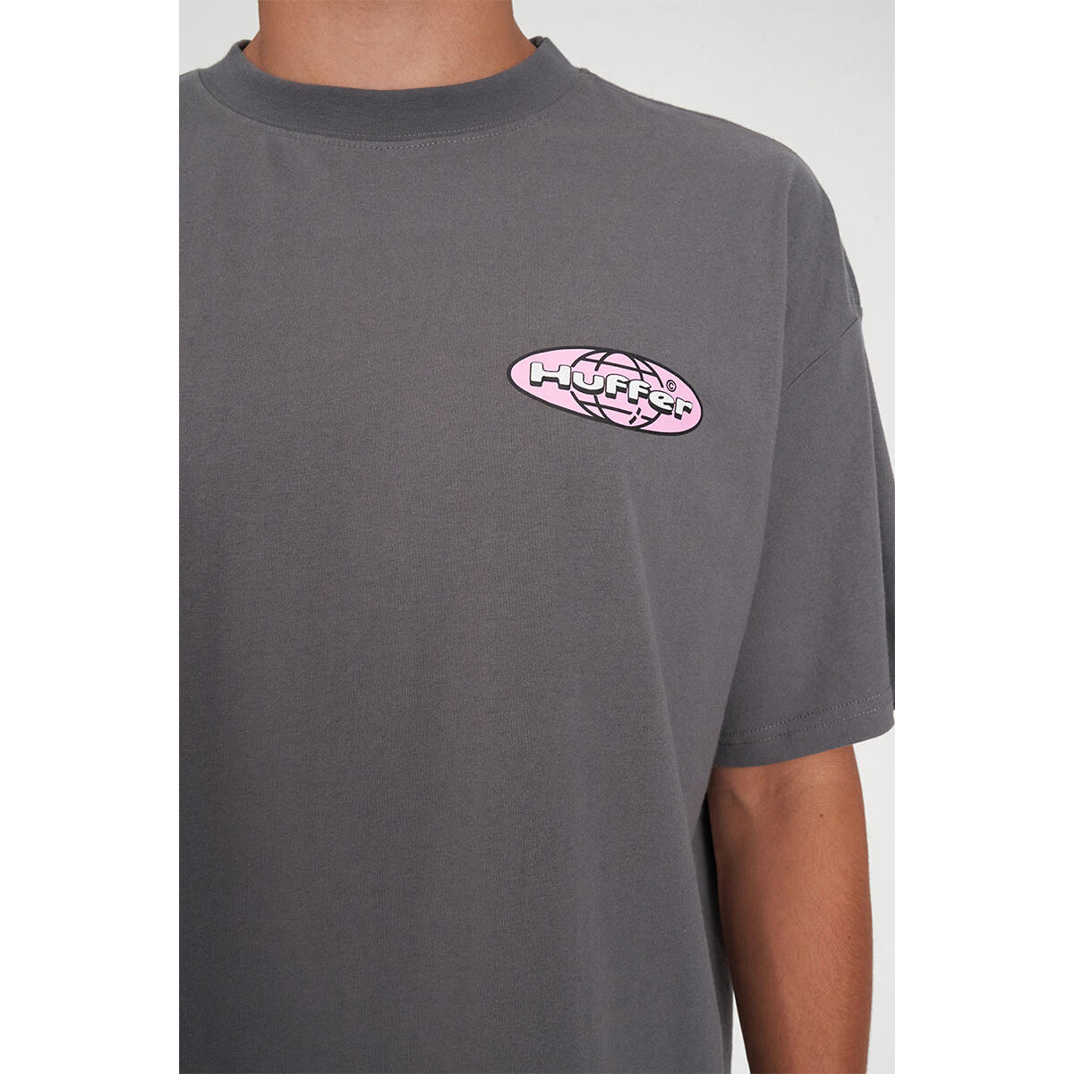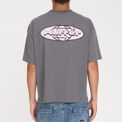• What you need to know: 100% Cotton, 220gsm, 25mm Neck rib, Boxy cropped fit, Short sleeve, Huffer branded placement screenprint & puff print