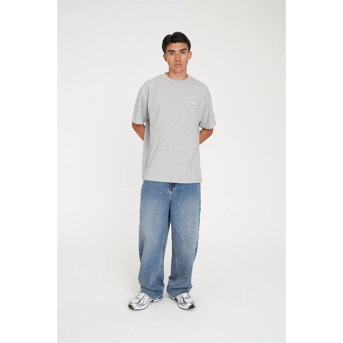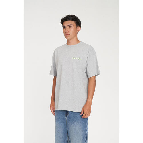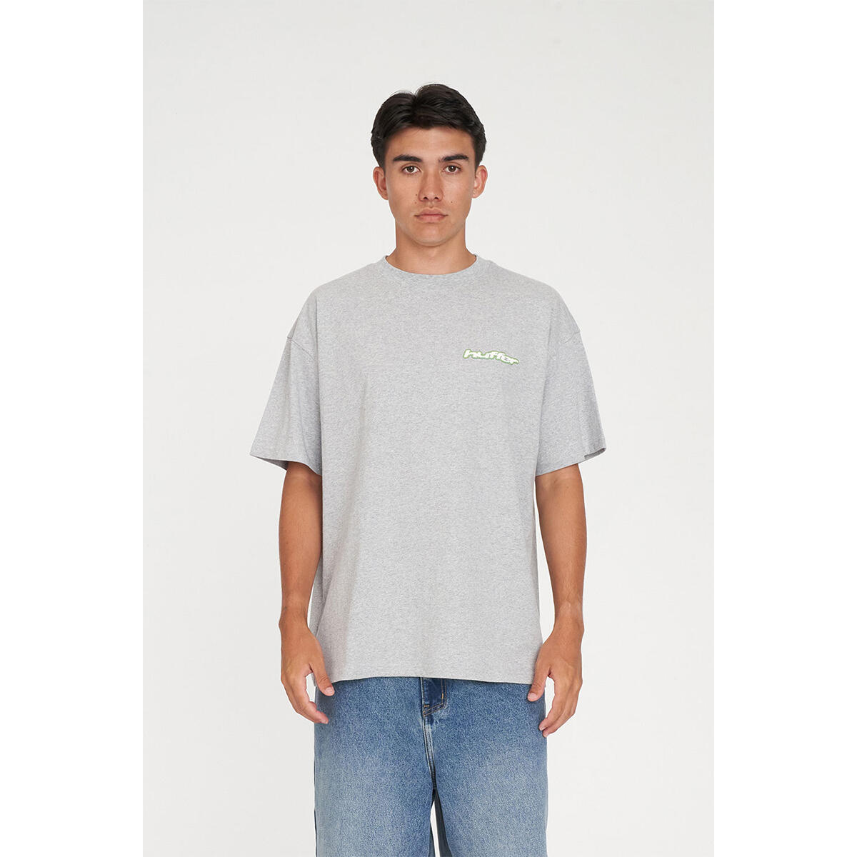 • What you need to know: 100% Cotton, 220gsm, 25mm Neck rib, Premium weight jersey, Custom piece dyed colour, Relaxed fit, Short sleeve, Huffer branded placement screenprint & puff print