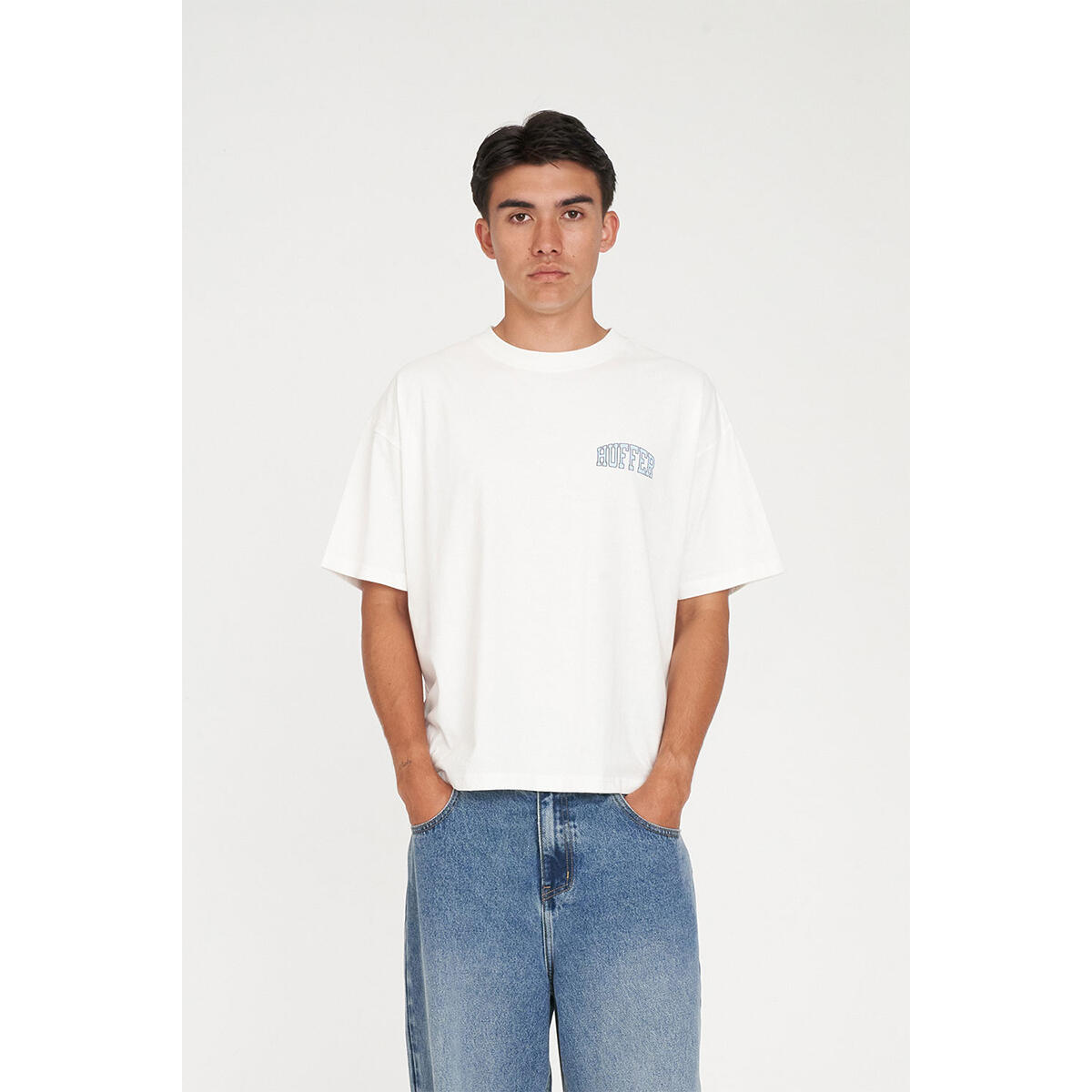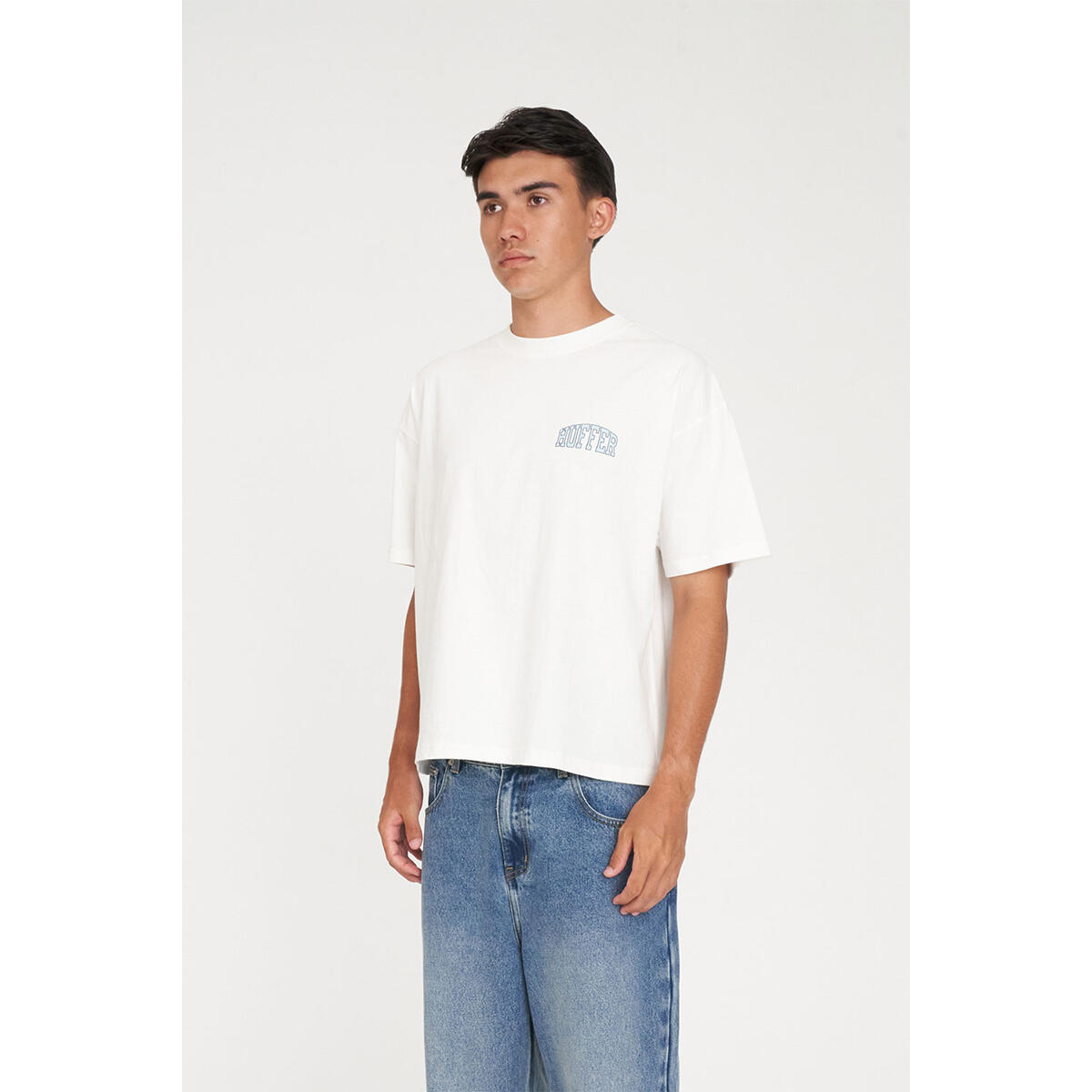 • What you need to know: 100% Cotton, 220gsm, 25mm Neck rib, Boxy cropped fit, Short sleeve, Huffer branded placement print & Puff print